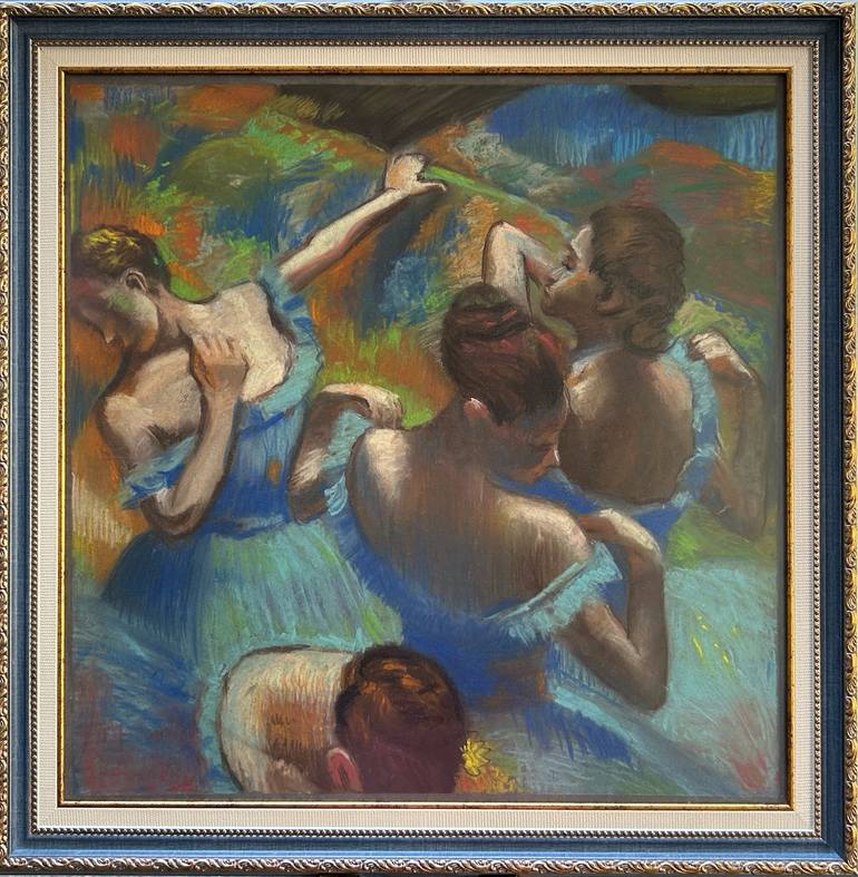 The Blue Dancers is a very special painting, in my opinion. I tend to think that the painting doesn’t depict four dancers/, but of one girl warming up before a performance. I love that Degas "cropped" one dancer's head. Some say it was because Degas was using photographs that were blurry and didn't...