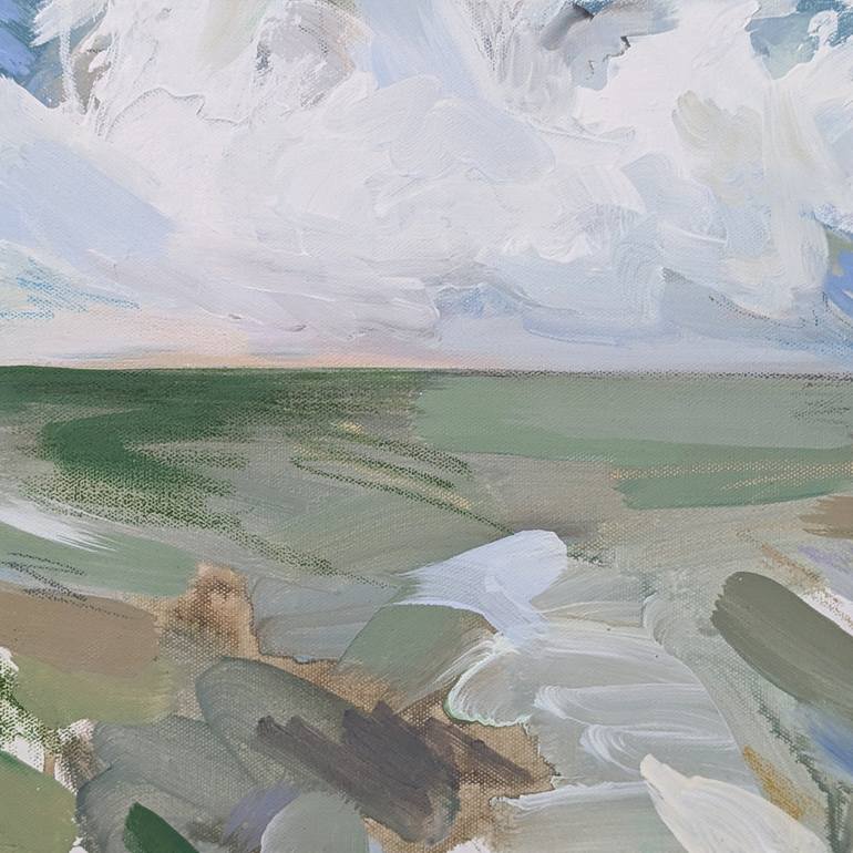 Felicity Souter is an abstract landscape artist living and working in Bristol, UK. Through her practice she works to evoke the dual sensation of calmness and energy she feels in nature, particularly in the Welsh countryside. A reoccuring motif can be found in many of her paintings, depicting a short length of coastline in Ceredigion which holds profound sentimental value. This deep connection to the land is mirrored by her attention to the sky, which holds equal importance in her compositions, creating a sense of space and power. The sound of the wind, the smell of the sea, and the crunch of the rocks underfoot are captured in the layers of paint. Combining a variety of mediums and techniques her painterly marks mimic the unpredictability of the landscape. After studying Fine Art at Newcastle University, Felicity worked in fine art sales and auctions before writing her debut book Painting the Plate: 52 Recipes inspired by great works of art from Mark Rothko, Frida Kahlo and many more, published by Prestel Publishing in October 2023. She is now a full-time artist, passionate about creating work that connects people to nature.