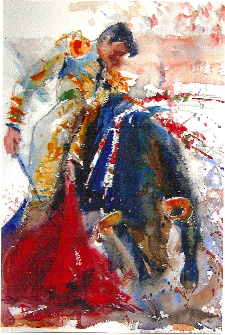 Just wanted to paint the bullfight with a lot of feeling, showing the danger and excitement. It was a challenge, I think it worked out well. This painting is ready to hang. the finished size framed is @ 16"x20"
