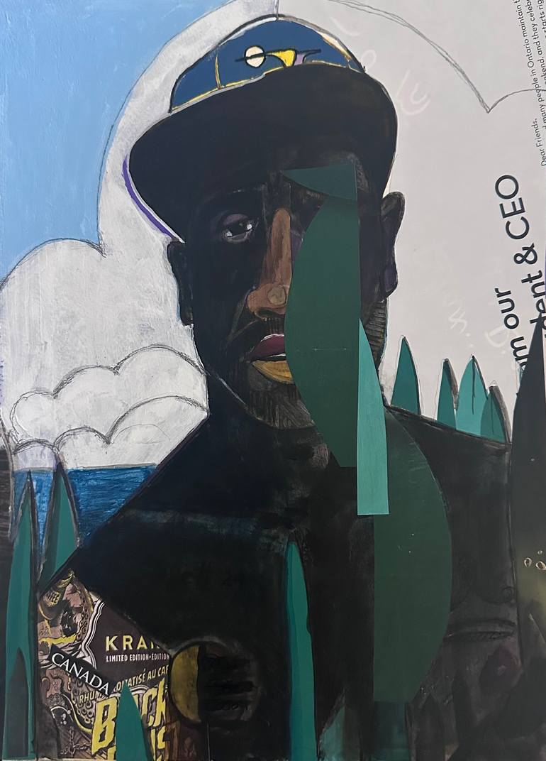 The CEO is and outdoors enthusiast, at one with nature, this multi medium combines acrylic paint, pencil and collage on pressed board*** please note there is a 1 cm unfinished boarder around the piece
