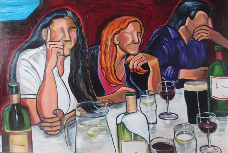 This painting was inspired by a 21st birthday celebration that I was present at. The birthday girl is in the middle. What is she thinking about? And what is her relationship to the people beside her? I chose acrylic as a medium as I love its vibrancy and brightness which was relevant to this paintin...