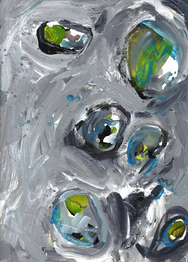 Inspired by a woman at an outdoor fair wearing a chartreuse coloured skirt, I went on retreat and brought only the colours in the skirt and played away on the little table in my Air Bnb Room. The result were these 3 Little Gems paintings! Licensing Opportunity: This original painting is available ...