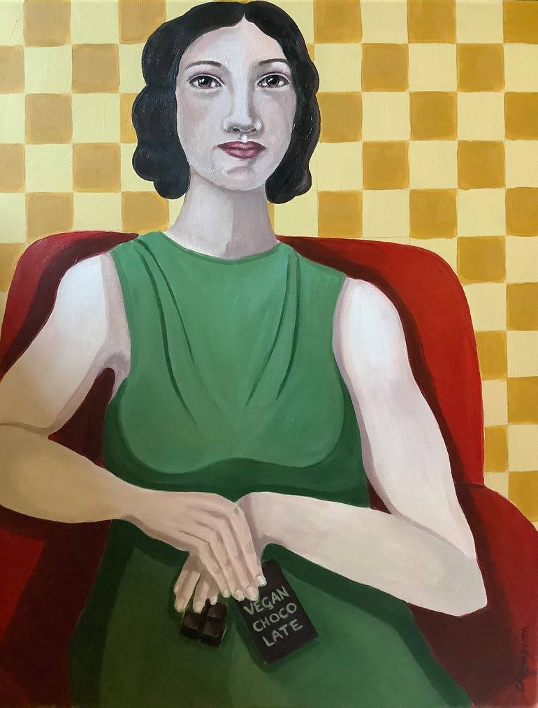 My favorite food possibly is dark chocolate, after a ground roasted black coffee it to me is heaven , put those two things together with an old movie then it is wonderful . This painting is all about taking time out , relaxing , resting and enjoying simple wonderful food .The painting would look gre...