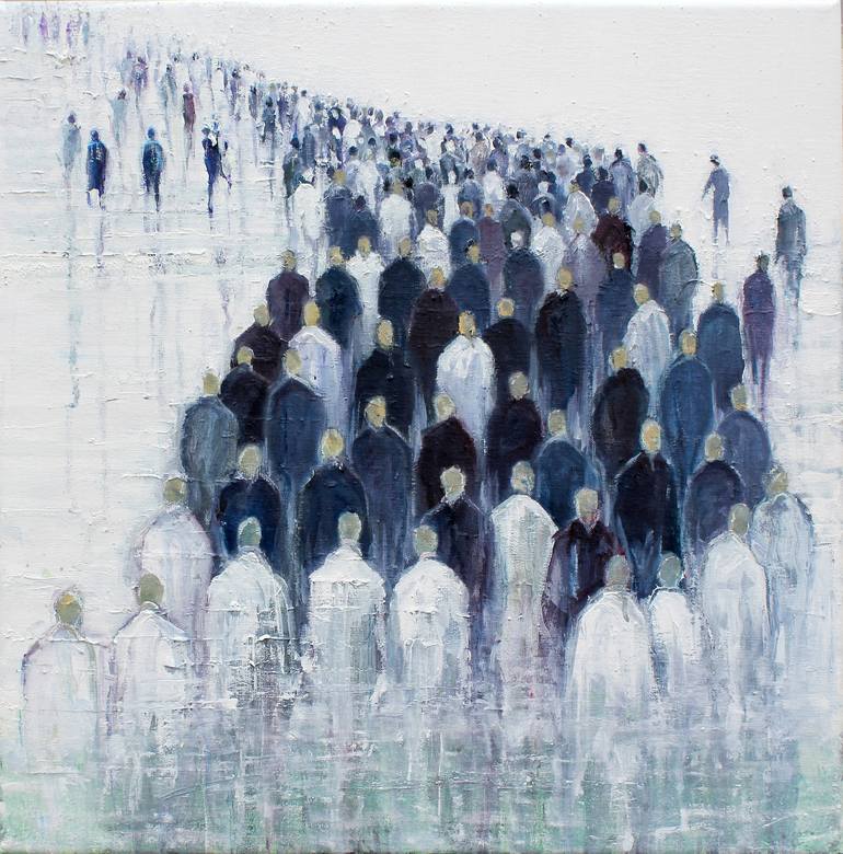 UK artist. Exhibited in UK, Switzerland, USA, China, France, Italy, Sweden, France, Bratislava and India. My work explores the complex relationships, transient nature and our interactions within the shared spaces around us. Examining and incorporating current human conditions affecting us in todays society, creates a narrative within the work and by expressing a personal response to co-occupying the space communicates a common sense of displacement, a question of belonging, purpose and relevance within our continually changing urban environments. Initial drawing, photographic and observational studies, enable me to abstract the essence of form, space and colour for my paintings and the main medium, oil paint, communicates more desirably the sense of continual movement and fluidity of the form within my work. A limited colour pallet and painterly mark-making helps to evoke a stronger suggestion of mood and place, encouraging the viewer to personally explore and interpret the painting further.