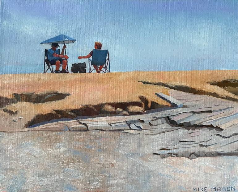 This painting depicts a lazy summer day at Kettle Cove State Park in Cape Elizabeth, Maine. I was captivated by the two friends sitting under beach umbrellas, deep in conversation and enjoying the day. I really liked how the scene had many of the elements characteristic of the Maine coast: grass,...