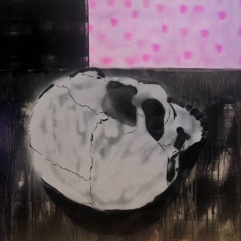 Acrylics and spray paint on wood board, 90x90cm, 2017. "The Cranium" is a series of originals depicting the human skull in a unsual point of view, which symbolizes the fragility of life and its inevitable path to its end. Includes Certificate of Authenticity. Ships unframed in a cardboard box.