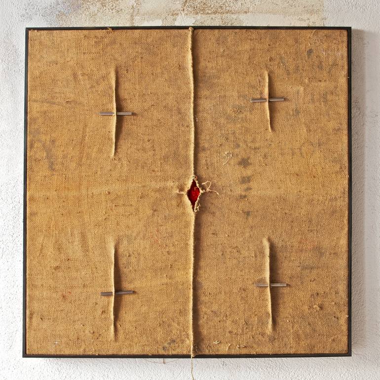 Thomas Mars, Gothenburg, Sweden, 1966. Mars was born in Sweden, but spent most of his adult life in France. Art was important in Mars' early life as his father was a collector, and when he passed, he bequeathed his oldest son a small collection of paintings. Amongst the collection were lithographs from Antonio Tapies, something that left a profound impression on Mars´ later work as an artist. Mars began working with thick impasto early on, using vintage burlap sacks as canvas that has today become a signature for Mars´ art works. Mars incorporates real objects into his works, such as metal, brass, and plastic PVC that he places in many layers and frequently burnt. The simple and often crude materials employed in his works contrast effectively with their delicate patterns, and the readily destroyed elements form a perforated network over an impinging backdrop field. Mars’ work has been influenced by Tapies, Alberto Burri and Mark Rothko, and the artists of the Arte Povera movement have had a strong impact on Mars works. Mars soon began to develop a recognisable personal style associated with Matière painting, a movement that focused on the materials of art-making. The approach resulted in textual richness and the exploration of matters transformational powers. Mars' combination of materials, including burlap, oil, dirt, plastic, PVC, metals ( iron and brass ), and charred wood, evokes both solidity and mass. The works are bold, with dark and rich colours, scarlet red, deep blues and ( name white oil ) that demand attention, even among a sea of other artists with has become his supporters.