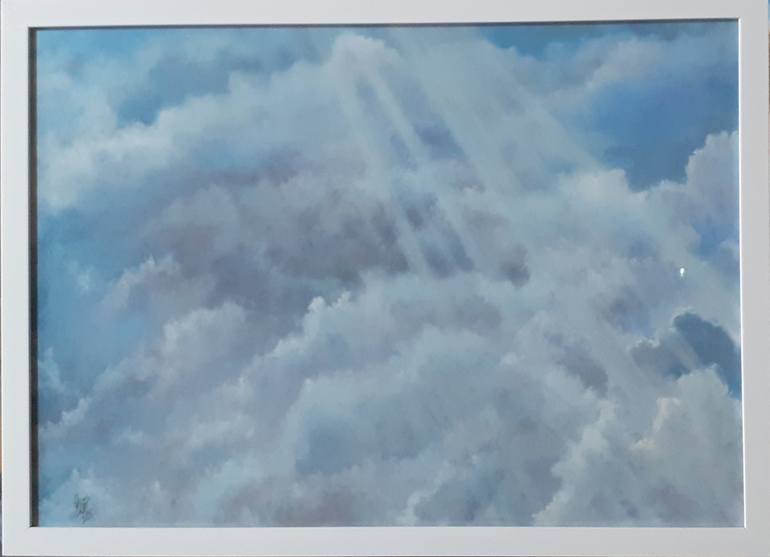 The painting is one of the artworks theme that concern my impressions looking at the sky and clouds The drawing is from my imagination, but it is based on my impression every time I look at the clouds and the sky in the city of Nazareth Unframed oil on paper