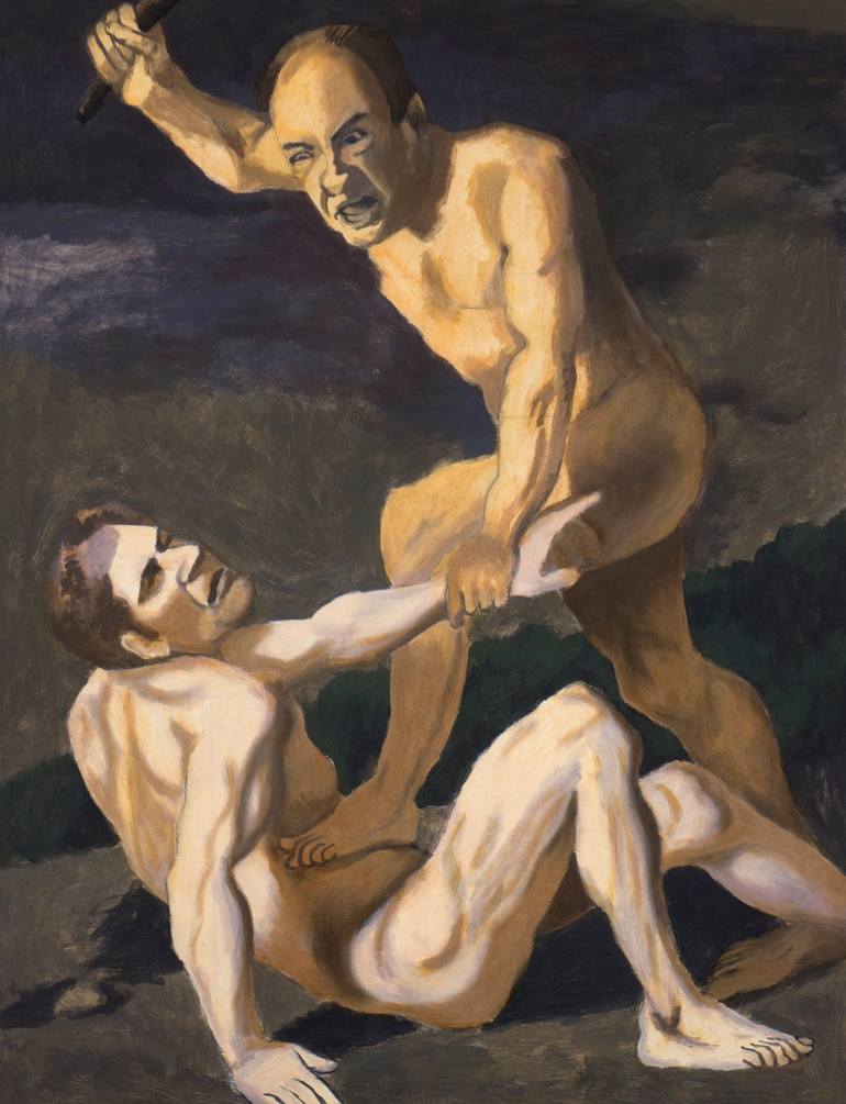 I loved the series Sopranos and decided to make a painting of the murder of Christopher Moltisanti by Tony Soprano in the style of the classical motif of The death of Abel.