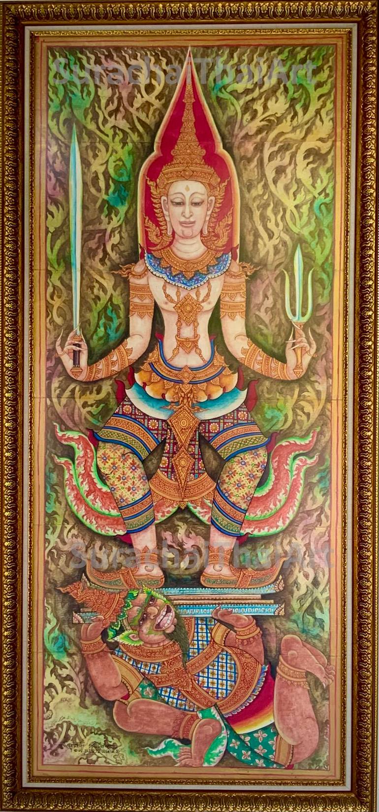 Painting of the deity that is believed as a guard. The sculpture of this deity normally place in front of the door that means to protect the land from bad things. Artwork will be delivered with golden frame as picture shown. We normally post the updated artworks and how to create those in F'Blue ...