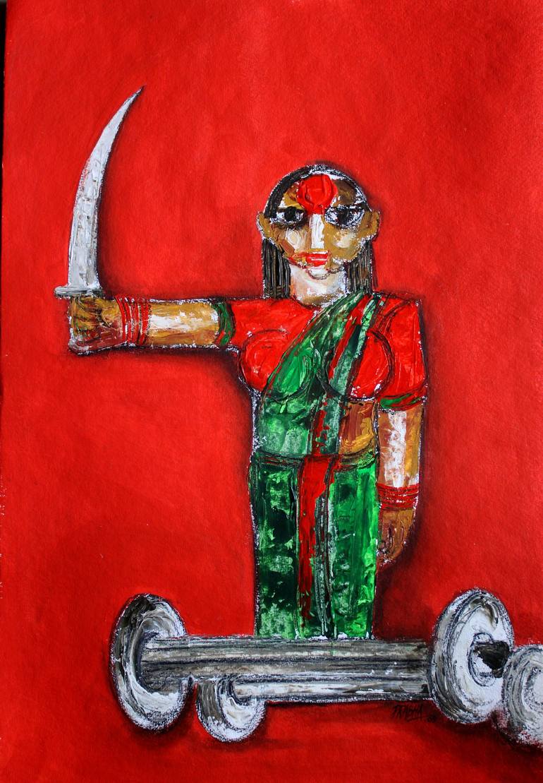 This painting is depiction of Goddess maramma, worshipped in Southern Indian villages of Karnataka.