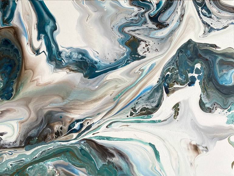 This artwork was created at the very beginning of 2020 using acrylic and water. I was very much inspired by the coastline and ocean like colors. It was very calming for me to do especially at a time when there was so much uncertainty. I hope that this piece brings a calming to anyone who sees it.