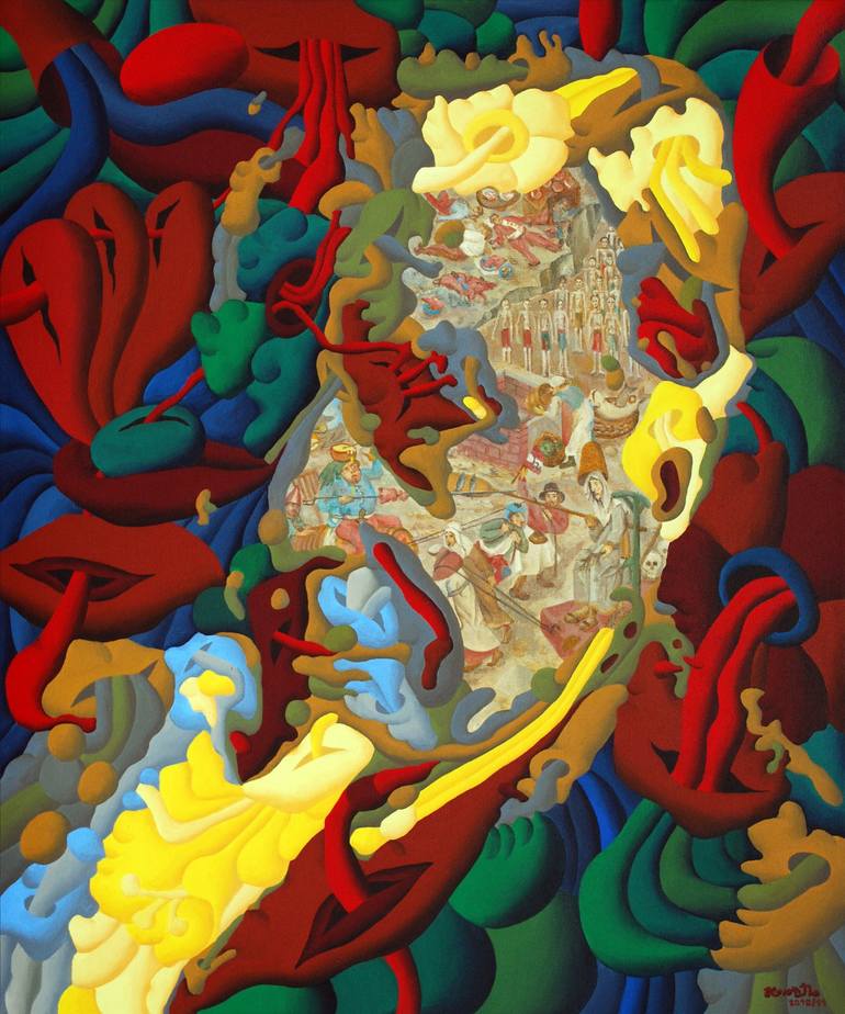 Werner Horvath - now working in Vienna, Linz and on the island of Crete (Greec) - was born in Linz, Austria in 1949 and has been painting since his youth. Beside this interest he studied medicine in Vienna and was a well known chief radiologist in Linz, specialising in interventional radiology. Horvath decided to leave the medical profession at the age of 50 and has been working as a freelance artist ever since. He opened a studio named "Villa Arte" in Kastellos on the island of Crete (Greece)2003 and his "Atelier Horvath" in Linz, Austria, where he works during the winter. His artistic style was taken from Phantastic Realism in the early years to New Constructivism in the later and more modern times. The term "New Constructivism" is taken from the philosophical theory and based on the works of Vico, Uexkll, Glasersfeld and Watzlawick, to name a few. The theoretical background is explained in detail by the artist in a stage play in form of a text-collage, called Jahrtausendwende - Die Theorie des neuen bildenden Konstruktivismus (in German). Horvath had tried to portray in his paintings, the reality we rely on is not so real at all. The world that we live in is understood only as we construct it ourselves. For example, colours only exist in our consciousness, therefore are not "real". The same is for objects and relationships. Finally they take into consideration the fact that we live in a symbolic world. Not only do we view Stalin as a Russian politician but also a symbol of dictatorship and cruelty. Horvath uses current political events at the inspiration for his work and often the colours and shapes used help to portray his opinion on our society.