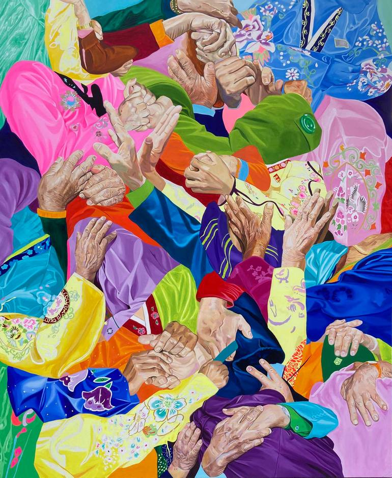 I explore history as a lens to examine emotional tension that shape belief and power. Rooted in Korean symbols—ritual garments, divided lands, and staged political gestures—my work moves beyond specific events to focus on the psychological and spiritual states that emerge within them. Rather than documenting history, I construct visual scenes where longing, conflict, and hope coexist. It function as emotional myths—spaces where personal memory, collective experience, and symbolic imagination intersect. Across all series, I approach painting as a way to reveal how human vulnerability and desire persist within systems larger than ourselves.