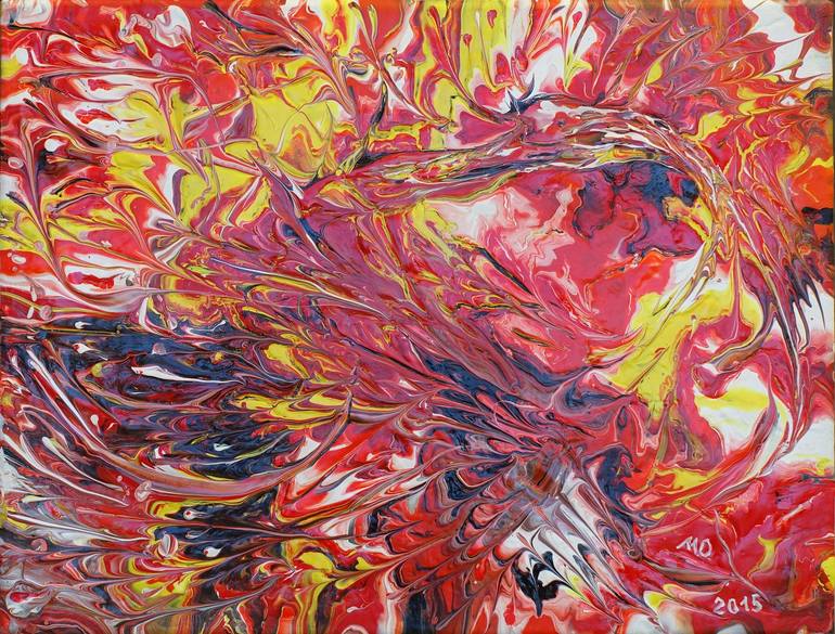Liquid Acrylic on Canvas, Abstract painting. Bright colors like the music of Igor Stravinsky. This is why the painting has the same name as the ballet composed by Stravinsky, that is to say: "The Firebird".