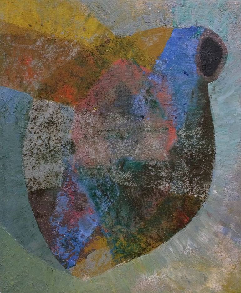 Small oil painting on masonite board. Seems to be a vessel type object with wings. Perhaps it hovers or flies.