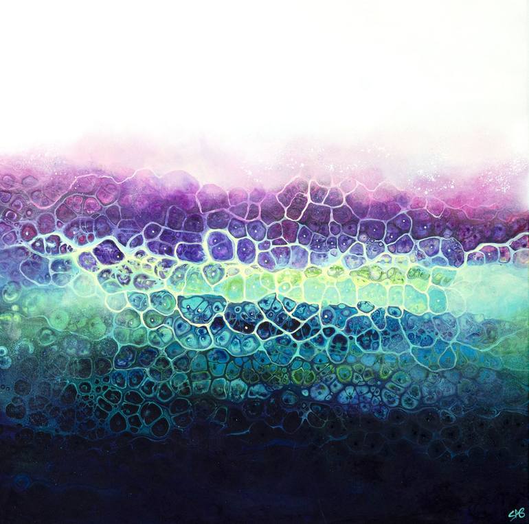 36x36x2 Mixed Media on Canvas Made with water from the James River in Richmond VA, Fluid Acrylic Paint and Mediums, Air (air gun), and Fire (torch). My work is inspired by the repeating patterns in nature and our connection to the all-encompassing force of life. This piece is a one-of-a-kind orig...