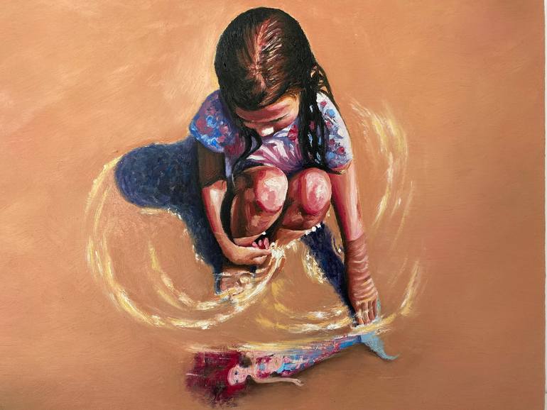 A painting of a girl, playing with her mermaid doll, in the shallow seawater. I loved painting this enchanting moment, where a young girl is playing with her favourite toy.. there’s something so nostalgic about it. Perhaps we can relate to it, because it brings back fond memories of our own childh...