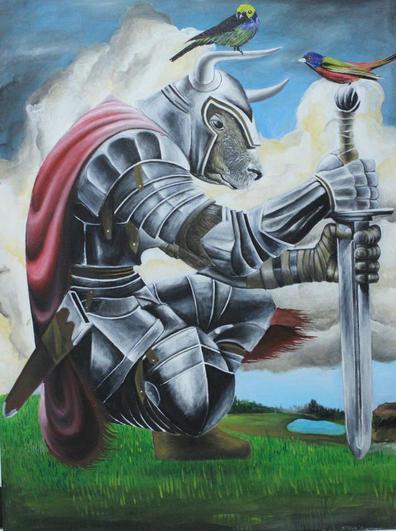 The goat use fighter uniform and use sword to conquered his enemy. The goat has good skil use sword and good war strategy. The goat has pal is bird. A duty of bird is spies, he always monitor enemy strategy and told to the goat. Team work leads to success.