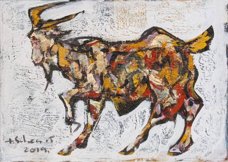 Expressionist style oil painting. Subject of the painting is the Goat