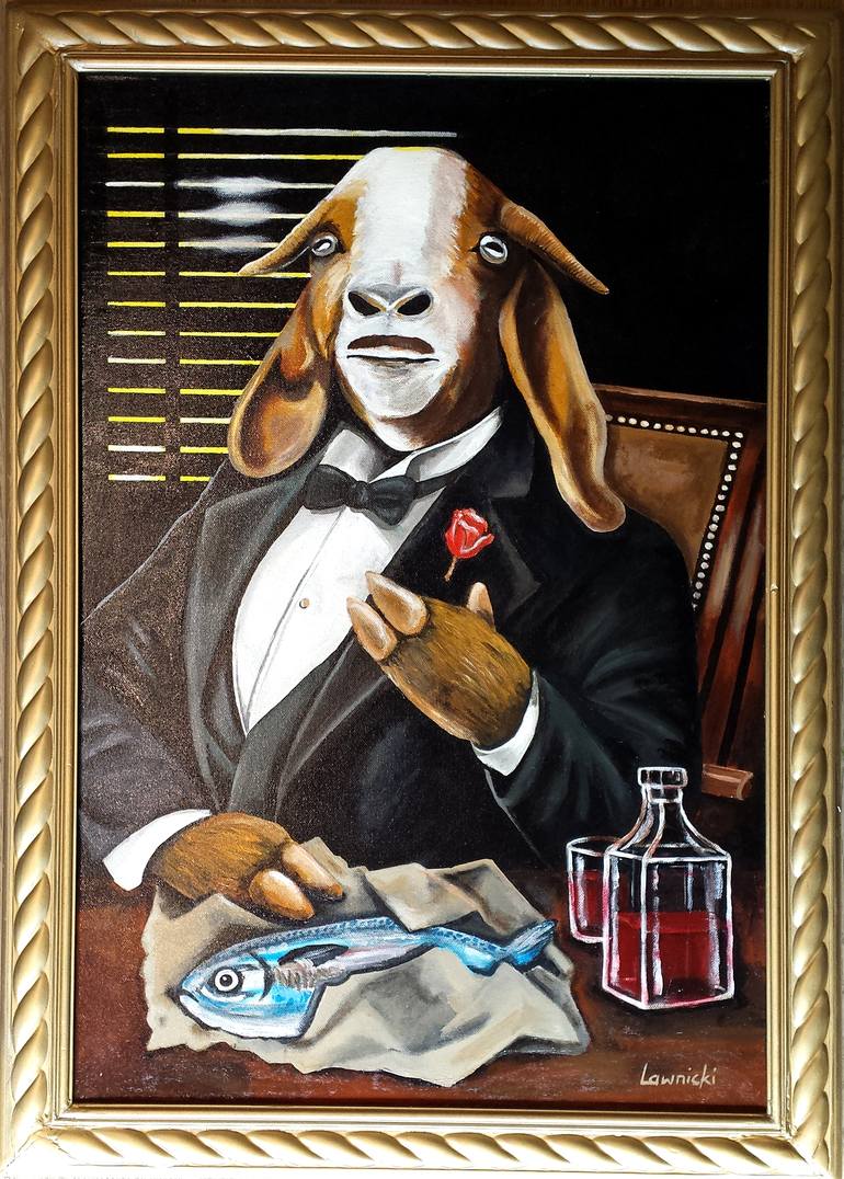 The Goatfather 23''X30 with frame 24.5''X34.5'' acrylic on canvas