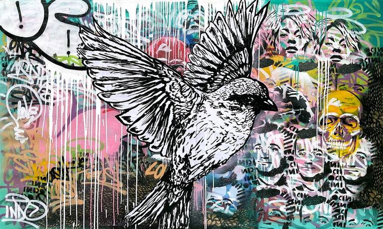 Patrick Edward Indo (b. 1982) is a powerhouse muralist and award-winning graffiti pop street artist based in Crescent Head, NSW. With a background in graphic design, multimedia, and illustration from Hornsby TAFE, INDO forged a successful career as a Senior Designer and Art Director before fully embracing his art in 2014. His bold, neo-expressionist murals combine poetic graffiti-inspired text, intricate stencils, and vibrant grunge textures, drawing from pop culture, music, and history. INDO's Collaborated with global brands like ING, ANZ, Red Bull, Monkey Shoulder Whiskey, Sony BMG, Sound Cloud, NRMA, NSW Government and The Rolling Stones Magazine, INDO’s work ignites urban landscapes with explosive energy. A live street art battle champion and Australian Street Art Award winner, INDO has been twice nominated for Australian of the Year (Northern NSW). His dynamic creations transform public spaces into immersive, thought-provoking experiences that inspire and energise communities.