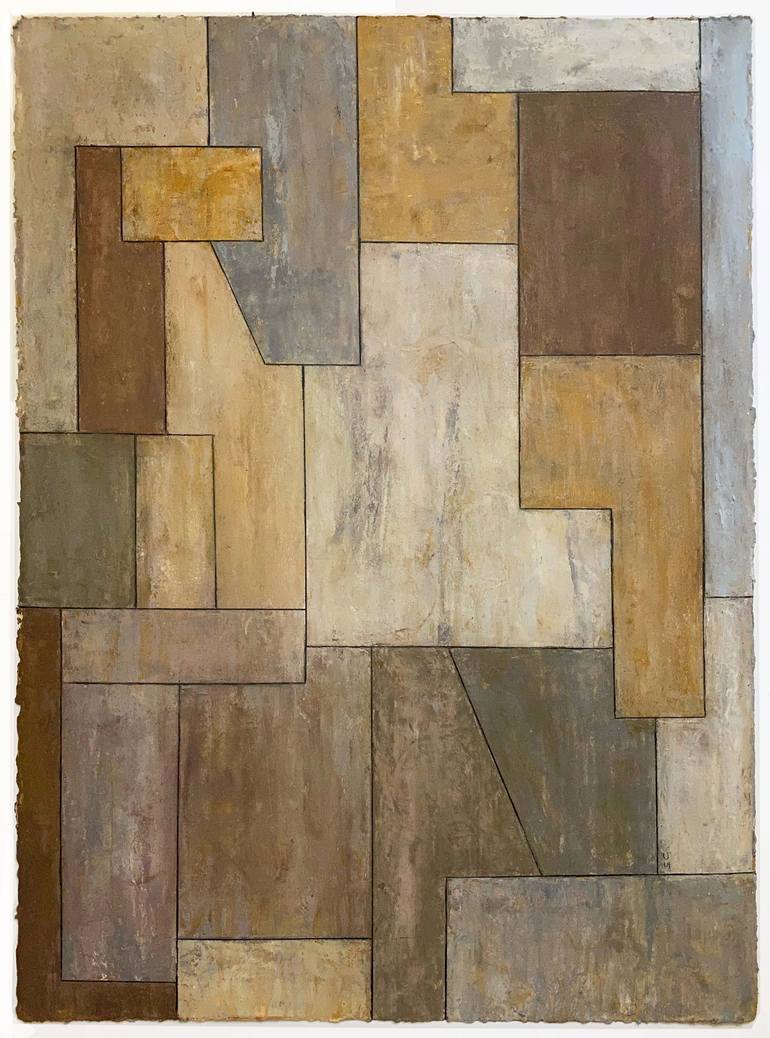 BIO— Recipient of the Pollack-Krasner Grant, Cimini primarily identifies as a self taught artist although he briefly studied at the the San Francisco Art Institute and the School of Visual Arts in New York City. His work is held in various corporate and private collections internationally. He is represented by Carter Burden Gallery, in New York and exhibits in various other galleries throughout the United States. ARTIST STATEMENT— Building on the architectural origins which have been the basis of my work for over a decade, I have started referring to my compositions as random symmetry. That is, creating a balance on the canvas with no discernible pattern allowing a symmetrical, meditative composition to emerge. I employ the golden mean as a reference which can often be seen in the composition. I use oil paint with a cold wax medium, layering the paint, as organic surfaces evolve within the restrained lines of the composition. During the process an environment develops giving an emotional story to the thoughtfully planned out compositions. My color choices vary, sometimes deliberating creating a series with particular color decisions and sometimes allowing the color choices to impulsively appear fueled by intuition and experience. Color remains a constantly unfolding mystery.