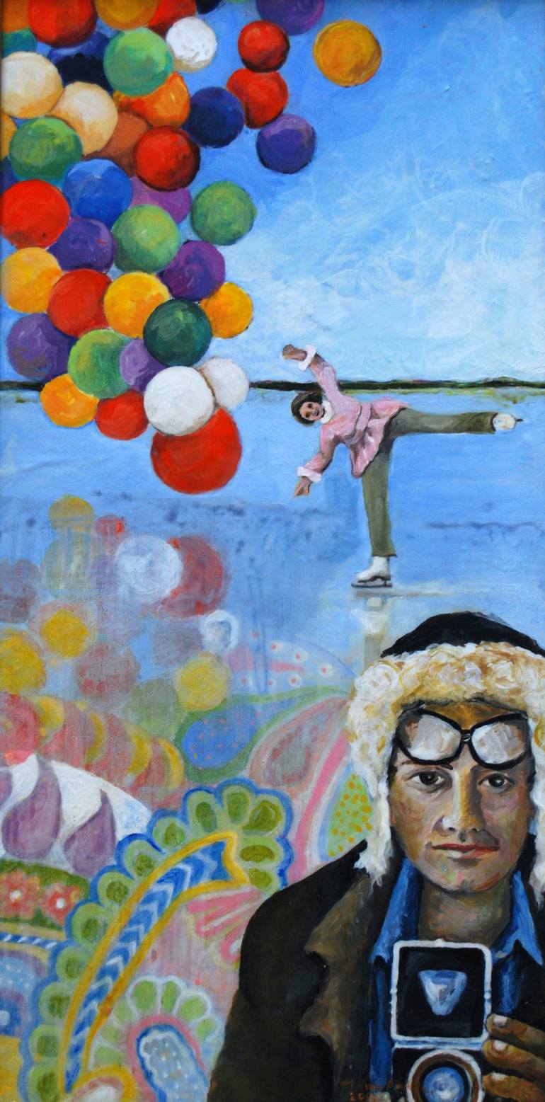 A woman follows her dreams (the balloons) hoping that her admirer captures her vision, but he does not. The ice reveals he has his own paisley dreams and his eyes are set in another direction (as per his camera is pointed in a direction opposite of the woman who rains in the background), hence...thi...