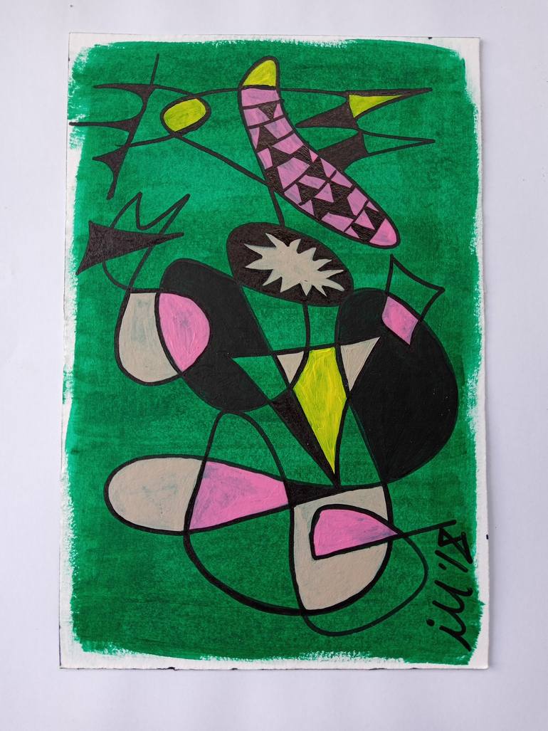 Original 2018. Part of a small series of painting challenge dedicated to one of my inspiration artists Joan Miro. Number 18/30. Will be coated with UV varnish for added protection against heat dust and moisture. Initialed on front. Titled dated and signed on the back. Comes with a Certificate of Aut...
