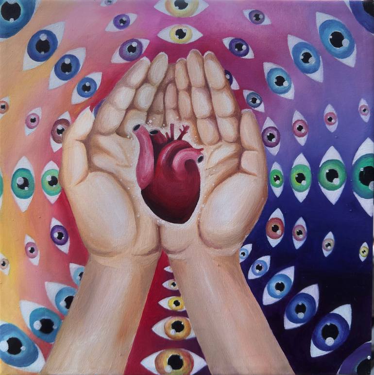 This artwork was created with intuitive vision and was inspired by mix of my memories and ideas. I, completely in love with eyes, and huge amount of them on this painting shows the the depth of our all-seeing, discerning nature, our omnipotent consciousness. The shining heart in the hands symbolise ...