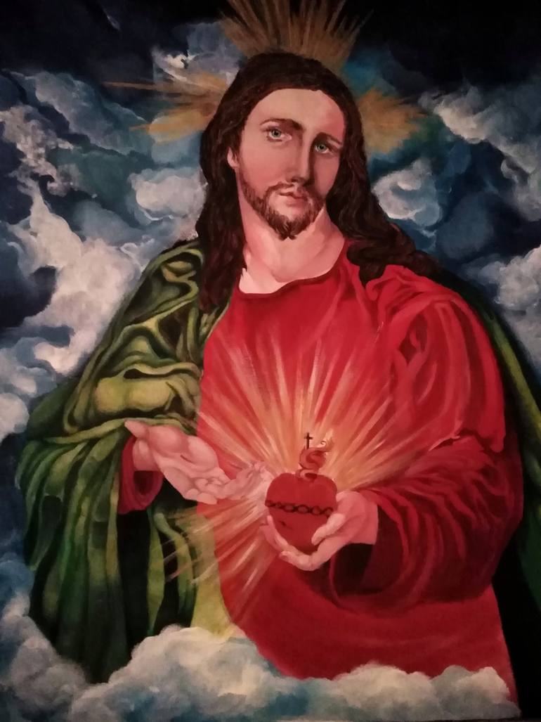It is a religious rappresent on canvas. The holy heart of Jesus.