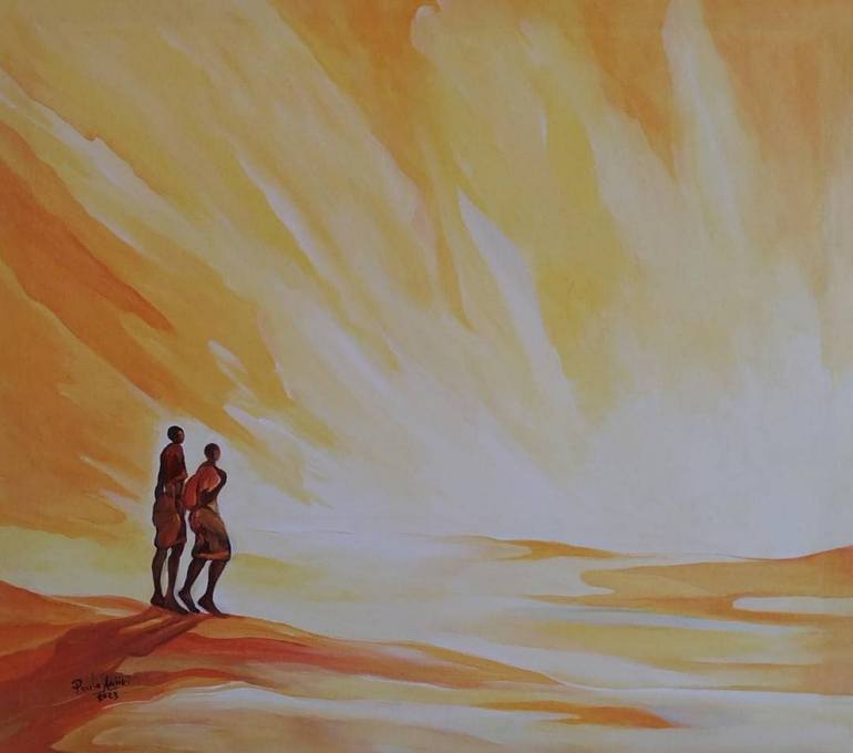 PAULO AKIIKI a professional modern, contemporary African Artist Painter. I have a masterly grip on my canvas. My love for Art began when I was still a toddler, scribbling on anything my hands could possibly land on. I registered a strong zeal for this special skill and furthered it when i joined a formal Art School at the prestigious Margaret Trowell School of Industrial and Fine Arts-Makerere University 1994 and graduated 1998 . I pursued various disciplines like Sculpture, Drawing, Ceramics, the History of Art, Graphics, business Studies in relation to Art, but emerged with Painting as my Major. I run UJUZI Art Studios/Gallery which I established and registered in 1999. Studios are currently located on plot 1812 Kisaasi road Bukoto, Kampala, Uganda in East Africa. ‘'I Love and admire the Dutch Master Van Gogh'‘. I am particularly thrilled by his masterly in the way he juxtaposes his pigments to trigger off endless emotions in the eyes of the observer. He mainly uses the Painting technique 'impasto' which simply refers to the application of heavy chunks of paint onto the ground or canvas. In the Impasto technique i register my messages or iconography applying the curly-whirly approach. The technique guides the viewer traversing my canvases from one point to the next and still brings you back creating a continuous movement. I have an extraordinary touch with brush strokes. I blend my sweeping waves of romantic, smooth but rich and harmonizing hues into a well calculated pattern. The rhythm draws you into a golden section of the heart of the painting. Majority of my paintings are on canvas. My art is non-representational, it is semi-abstract, emotional, with a strong iconography, full of energy/with the sun as my signature, modern and contemporary and built with professional materials. Sometimes I do work with traditional subject matter but with a touch of modernity. I LOVE NATURE and the DEPTH AND PERSPECTIVE draws you deep into the inner part of my art. Acrylic and oil on canvas form the main media of my paintings. I use professional art materials that match Internationally accepted standards.