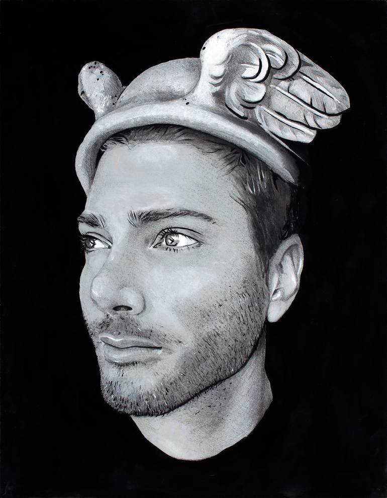 When painting, headdresses and crowns deify Kate Kelton’s subjects. She uplifts the Unsung Sheroes & Heroes, Patriarchy Smashers, Warrior Survivors, Silence Breakers, Philosophers, Truth-Tellers, Whistle Blowers and Thought Giants of all stripes. She paints her portraits cloaked in the garb of statues Ladislav Šaloun sculpted onto the train station that her great-grandfather, Josef Fanta, designed for Prague in 1901 - 1909. Apotheosis through a reclaimed, reapplied Art Nouveau. Sampling her own lineage, she transforms a historical body of work, itself a thing of lasting beauty; exchanging granite for graphite, plaster for paint. In Photoshop, she first combines the desaturated faces she's found, sourced or shot of her chosen subjects, with the black and white photos from her family and friends, of the statues in situ. Then she uses graphite, inks and acrylic paints and glazes to create the works on panel or canvas, literally uplifting and elevating her battle-weary subjects to the highest reach of architectural strata. 'Ancient and distant godlike beings, surveying a dying empire, trade places with the fresh blood of her subjects. The work presents a tactility against the digitized space, and represents a taking, an acquisition of power back from the tastemakers. Here, the mantle of the artist is above brand influencer, above internet commentator, above mere marketability. In their gaze is a warning, “Art is immortal. Come for me, why don’t you?”' ~ Micah Chaim Thomas "Kate's recent work is a matter of expansion through contrast - she is as ephemeral as her subjects are concrete architecture; she is structural when her subjects should slip through your fingers like too-fine sand. Taken as a whole, the works in her magnificent series Sentry are incredibly intelligent, but when looked at individually, you come to understand that these are statements of life beyond themselves. The series take embellishments of a Prague train station designed by her great-grandfather, Josef Fanta, and combines these with portraits of women who have stood against the sexual harassment and assault rampant in Hollywood. These women, like Kate herself, have suffered in the era where powerful men, every bit as immovable as the train station, wielded their power without check. The portraits emblazoned on architectural elements, they are marked against the edifice, every bit as permanent, and perhaps even more defining.
