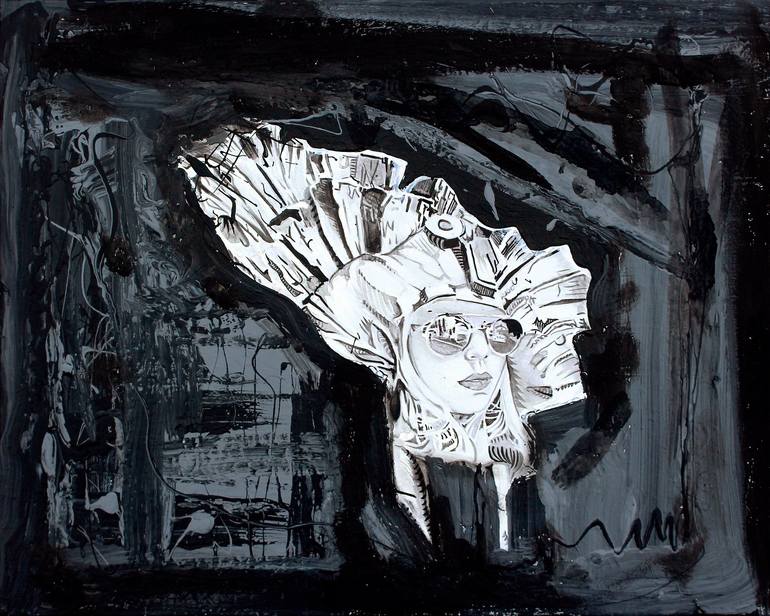 When painting, headdresses and crowns deify Kate Kelton’s subjects. She uplifts the Unsung Sheroes & Heroes, Patriarchy Smashers, Warrior Survivors, Silence Breakers, Philosophers, Truth-Tellers, Whistle Blowers and Thought Giants of all stripes. She paints her portraits cloaked in the garb of statues Ladislav Šaloun sculpted onto the train station that her great-grandfather, Josef Fanta, designed for Prague in 1901 - 1909. Apotheosis through a reclaimed, reapplied Art Nouveau. Sampling her own lineage, she transforms a historical body of work, itself a thing of lasting beauty; exchanging granite for graphite, plaster for paint. In Photoshop, she first combines the desaturated faces she's found, sourced or shot of her chosen subjects, with the black and white photos from her family and friends, of the statues in situ. Then she uses graphite, inks and acrylic paints and glazes to create the works on panel or canvas, literally uplifting and elevating her battle-weary subjects to the highest reach of architectural strata. 'Ancient and distant godlike beings, surveying a dying empire, trade places with the fresh blood of her subjects. The work presents a tactility against the digitized space, and represents a taking, an acquisition of power back from the tastemakers. Here, the mantle of the artist is above brand influencer, above internet commentator, above mere marketability. In their gaze is a warning, “Art is immortal. Come for me, why don’t you?”' ~ Micah Chaim Thomas "Kate's recent work is a matter of expansion through contrast - she is as ephemeral as her subjects are concrete architecture; she is structural when her subjects should slip through your fingers like too-fine sand. Taken as a whole, the works in her magnificent series Sentry are incredibly intelligent, but when looked at individually, you come to understand that these are statements of life beyond themselves. The series take embellishments of a Prague train station designed by her great-grandfather, Josef Fanta, and combines these with portraits of women who have stood against the sexual harassment and assault rampant in Hollywood. These women, like Kate herself, have suffered in the era where powerful men, every bit as immovable as the train station, wielded their power without check. The portraits emblazoned on architectural elements, they are marked against the edifice, every bit as permanent, and perhaps even more defining.