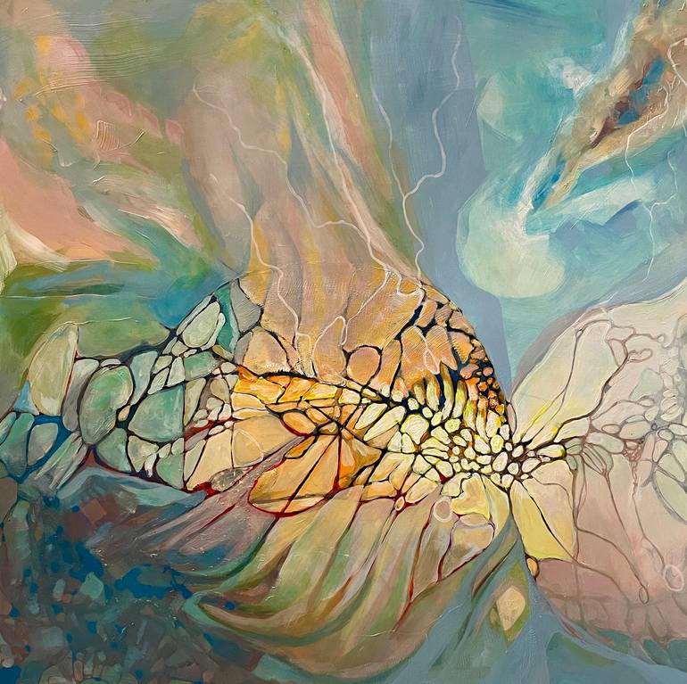Anastacia Sadeh graduated from Washington University in St. Louis with a double major in Art History and Printmaking/Drawing. After teaching fine arts in Atlanta, she moved to St. Paul, Minnesota where she was accepted into the AZ Cooperative Gallery, a democratically run artists’ cooperative, one of the first such spaces in the country. Her love of layering both color and form within printmaking transitioned into abstract painting during this time as her interest in using her work as a conduit to explore emotions, relationships, and the mind grew. Sadeh’s current work examines how human connection affects the ongoing relationship between emotional authenticity, human connection, self-awareness, and mental health. She combines both abstract marks and color, as well as, figurative and landscape elements in order to express these stories. Some stories place the viewer as a timeless witness to fleeting, yet tumultuous emotions. Other stories combine her organic, abstracted forms with more direct human and landscape elements. These combined compositions create a more direct narrative for the viewer. Sadeh explores the complexity of human connection as it pertains to self-awareness and mental/emotional health. Her current preference is to work on either stretched canvas or cradled wood panels.