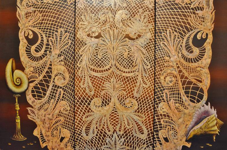 The Lace of infinite life The big picture consists of 3 pictures. Triptych. Threads show life is always different and beautiful in its own way... Coins infinite wealth... seashells the depth of knowledge and eternal life that a person so wants... All this is our life ...
