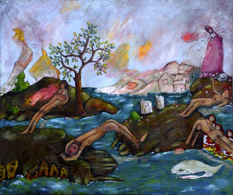 This was painted from the idea of the mothers who build the bridges across the lands and migration and the children that they let go across.