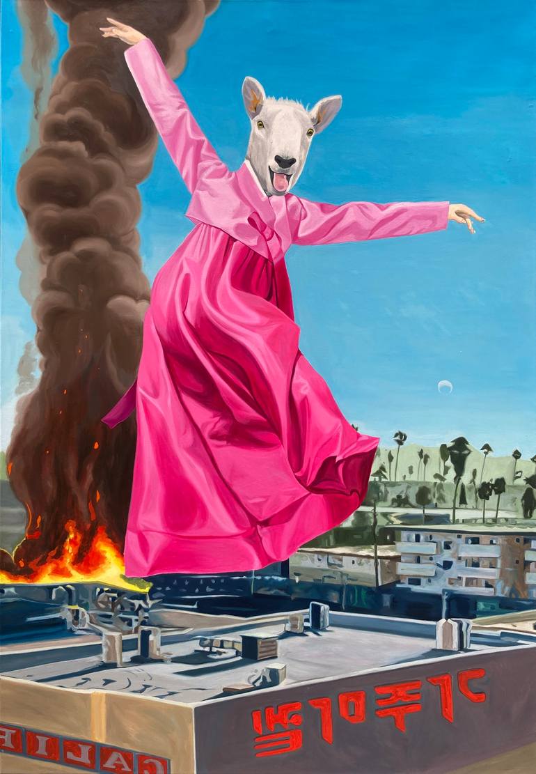 I explore history as a lens to examine emotional tension that shape belief and power. Rooted in Korean symbols—ritual garments, divided lands, and staged political gestures—my work moves beyond specific events to focus on the psychological and spiritual states that emerge within them. Rather than documenting history, I construct visual scenes where longing, conflict, and hope coexist. It function as emotional myths—spaces where personal memory, collective experience, and symbolic imagination intersect. Across all series, I approach painting as a way to reveal how human vulnerability and desire persist within systems larger than ourselves.