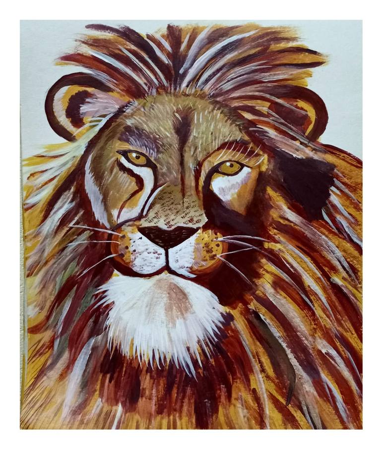 Acrylics paints are used for the lion painting. The hint of abstract is given to it. I personally like to paint wild animals that's why I painted this lion. you can get it in customized size and material. Do visit artby_sheza on insta.