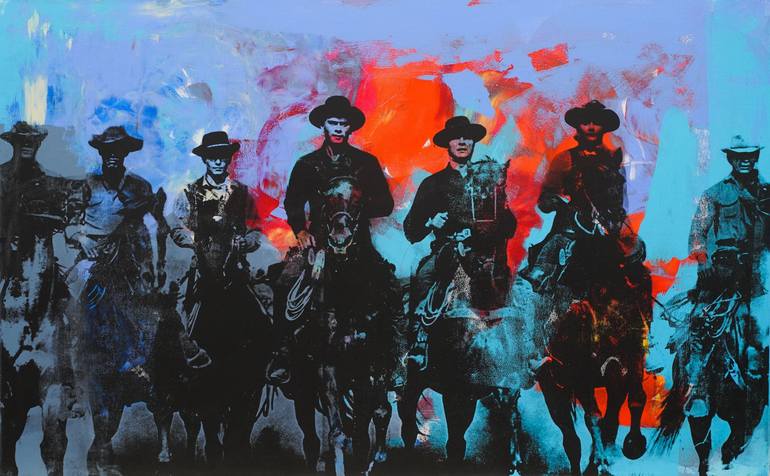 The Magnificent Seven Pop Art painting on canvas. Ships unframed in a box.