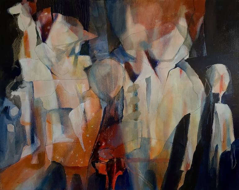 I started in my art-education with photography, but changed quickly to art, design and illustration. After the Academy of Arts I landed in Amsterdam and stayed there for 23 years, then running a creative centre elsewhere. Now i live and work in the North of the Netherlands, where I created a only-Art-related-environment: member of group of artists and participating in an Art-foundation. About my artwork: At first sight there is a lot of movement in my paintings, but if you look closer there is no direct movement at all. The figures are there, they look at you, but you can't look them in the eyes. They want to stay incognito. They do not want to be recognized. It is all a structure of lines, together with an often simple use of color. About my other artwork: Every year I paint images of completely abandoned villages and empty flat landscapes.