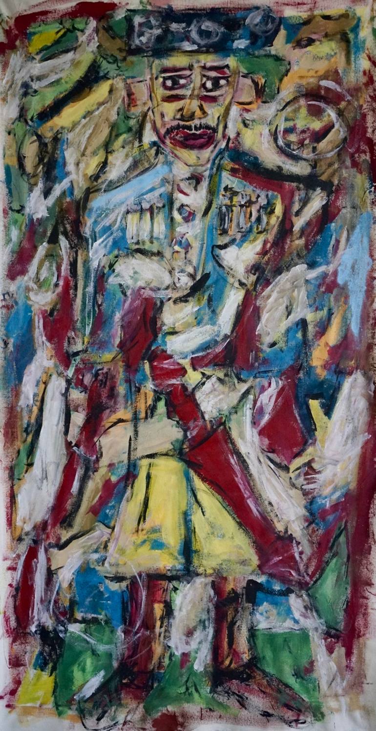 An abstract depiction of a warrior in a native Caucasian costume.