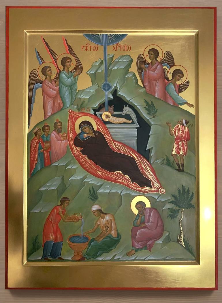 This icon was painted for the festive tier of a church. It is a contemporary interpretation of an ancient icon from the Sophia Cathedral Festal Row. Natural pigments in the traditional egg tempera technique, with gilding on bole.