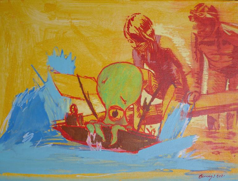 Amy Bernays lives and works in Los Angeles, California. Born in London, she graduated with a BA(honors) in Fine Art from Central St Martins College in 2001. Her paintings are landscapes of personal interaction; poems to the love of line. Working with non-linguistic communication such gesture, body language, lingering looks and gossip. Her work is anthropological and personal, ponderings on the great themes of life, love and leisure. AKA Amelia Bernays Pitti (what systemic sexism?)