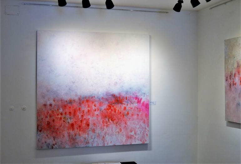 “An intimate and private atmosphere is one of the unique traits that distinguish the creative process of Agnieszka Ceccarelli’s artwork: her art becomes a way to restore the connection with a profound perception and to give shape to the essence of things as she observes them. Nature becomes the preferred topic on her canvas without limiting itself to a mere figurative representation but going beyond, pushing the envelope between an oneiric state and a metaphysical one, where the artist attempts to create forms and colors. Details and subjects are just sketched, and they stand out on a surface that conveys a delicate, slow feeling and perceived reflection. Acrylic and charcoals are used without the usual “tools of the trade” attitude; in fact, Ceccarelli drops spatulas and brushes to use her hands to blend and experiment with the materials she has chosen. This physical and “carnal” relationship with her paintings allows getting deeply in touch with them, almost as if undertaking a cathartic process of freedom from emotions and communion between soul and body in a symbiotic relationship with nature. Observation of reality becomes the mirror of old memories, of sensations experienced, of innermost states of the soul. It is a delicate approach, never invasive or aggressive: the artist subtly brings herself before the Creation, which becomes her intimate confidant and draws from it the intimate images that the canvas returns full of gracefulness and communicative strength where soft colors and mist-like shapes give us pause, taking us into a timeless dimension. Across the entire collection, we find technical and stylistic consistency full of contemplative lyricism in a vibrant ensemble where delicate colors gracefully faded embraced in perfect harmony with powerful textures. The elegance of the result characterizes all the artist’s artwork and becomes the undisputed and ever-present element, an invitation to reflect, a warning to pause for a moment to regenerate while abandoning consciousness to one’s inner spirit.” Dr.ssa Monica Ferrarini