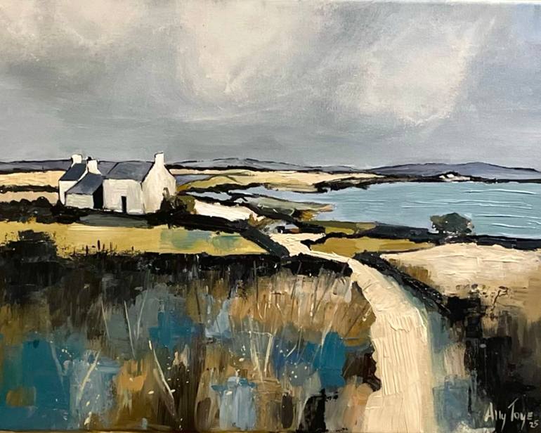 “The Road Home” captures the timeless beauty of the Irish coastline, where winding paths lead to quiet, whitewashed cottages nestled in the rugged landscape. The moody sky, rich earthy tones, and textured brushstrokes evoke the fresh, windswept beauty of the West of Ireland. Inspired by the peaceful...