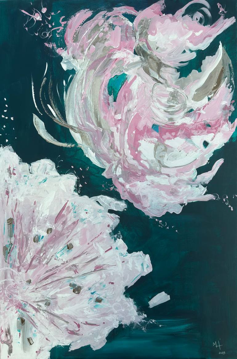 Acrylic Painting on a light 24” x 36” Canvas. In the midst of my research and study of Rococo and sliding slightly towards Romanticism, I was drawn to giant flowers spaced and pierced in a green background whose Rococo style was expressed more simply than figures. An elegant and unpretentious Pai...