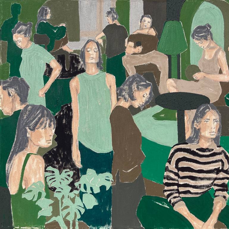 The Room No:283 Acrylic unprimed canvas 90x90cm / Streched / Wooden Frame ERNA UÇAR The Room Series is about modern people, the relationships I observe in my immediate environment, popular culture and media, the idiosyncratic moods of crowds from different cultures. Observing different cultures...