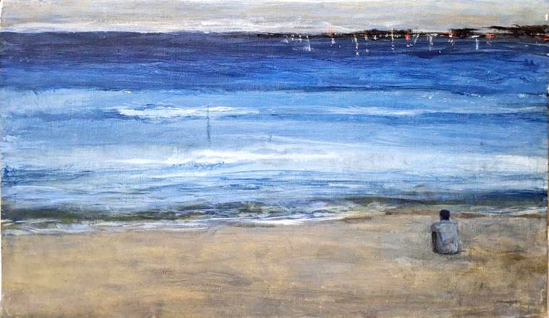 I've always enjoyed visiting the beach at night. With the crowds gone one could finally hear the waves. The lights twinkling across become visible (The medium used is acrylic. The painting was removed from it's canvas wood to guarantee it shipping without risking puncture)