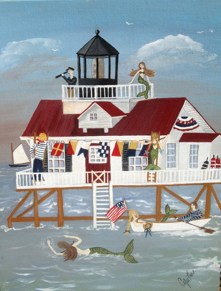 In memory of my wonderful mentors, Ralph and Martha Cahoon whose mermaids are now part of maritime art legends, here is my happy mermaid/human family scene.